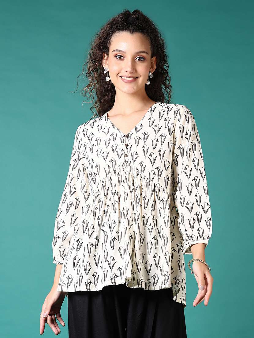 women off white printed v neck flared kurti - 21698909 -  Standard Image - 1 women off white printed v neck flared kurti - 21698909 -  Zoom Image - 1