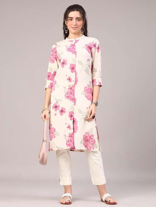 women floral three quarter sleeve straight kurta - 22246925 -  Standard Image - 1 women floral three quarter sleeve straight kurta - 22246925 -  Zoom Image - 1