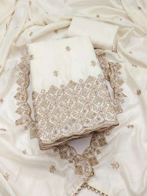 • Look ultra gorgeous in unstitched suits from Peachmode and grab these beautiful suits in off white colour.