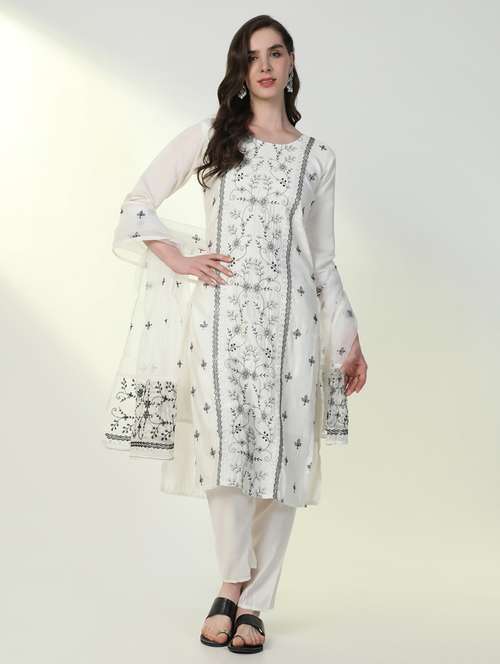 - Find gorgeous sets of ethnic wears in trending designs in off white colors suitable for festive wear of occasions.