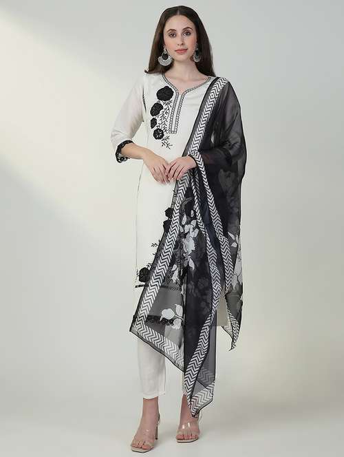 - Find gorgeous sets of ethnic wears in trending designs in off white colors suitable for festive wear of occasions.