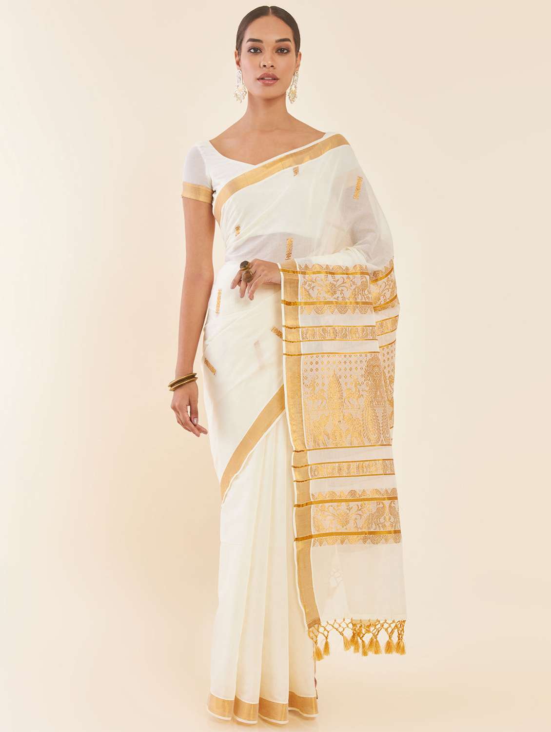 - » women's self design off white colored saree