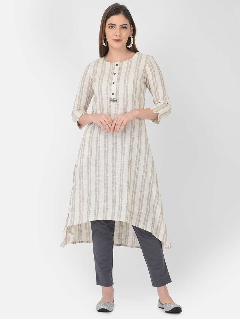 - Grab this beautiful kurta made up of cotton fabric featuring round neck designs.