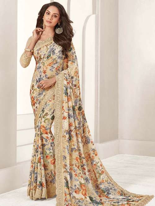 floral printed saree with blouse - 15559924 - Very Small Image - 1
