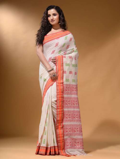 women's self design off white colored saree with blouse - 19865940 - Very Small Image - 1