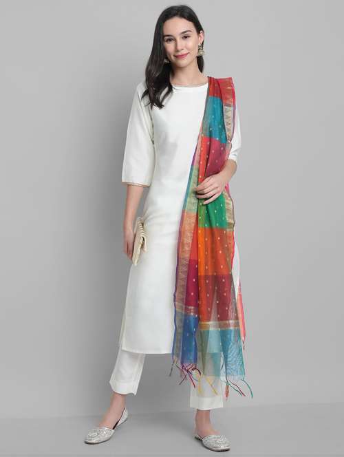 - Find gorgeous sets of ethnic wears in trending designs in white colors suitable for casual wear of occasions.