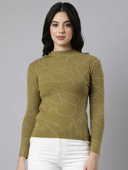 - » women olive embellished long sleeves top