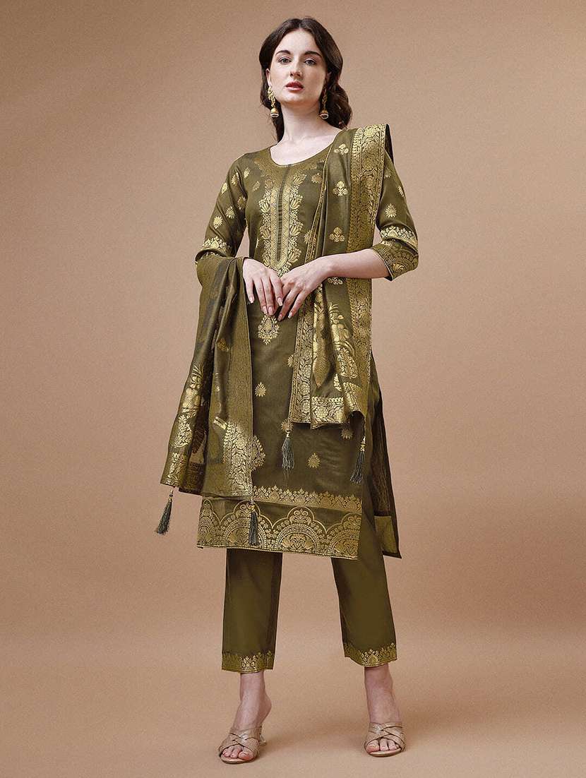 - Find gorgeous sets of ethnic wears in trending designs in olive colors suitable for casual wear of occasions.