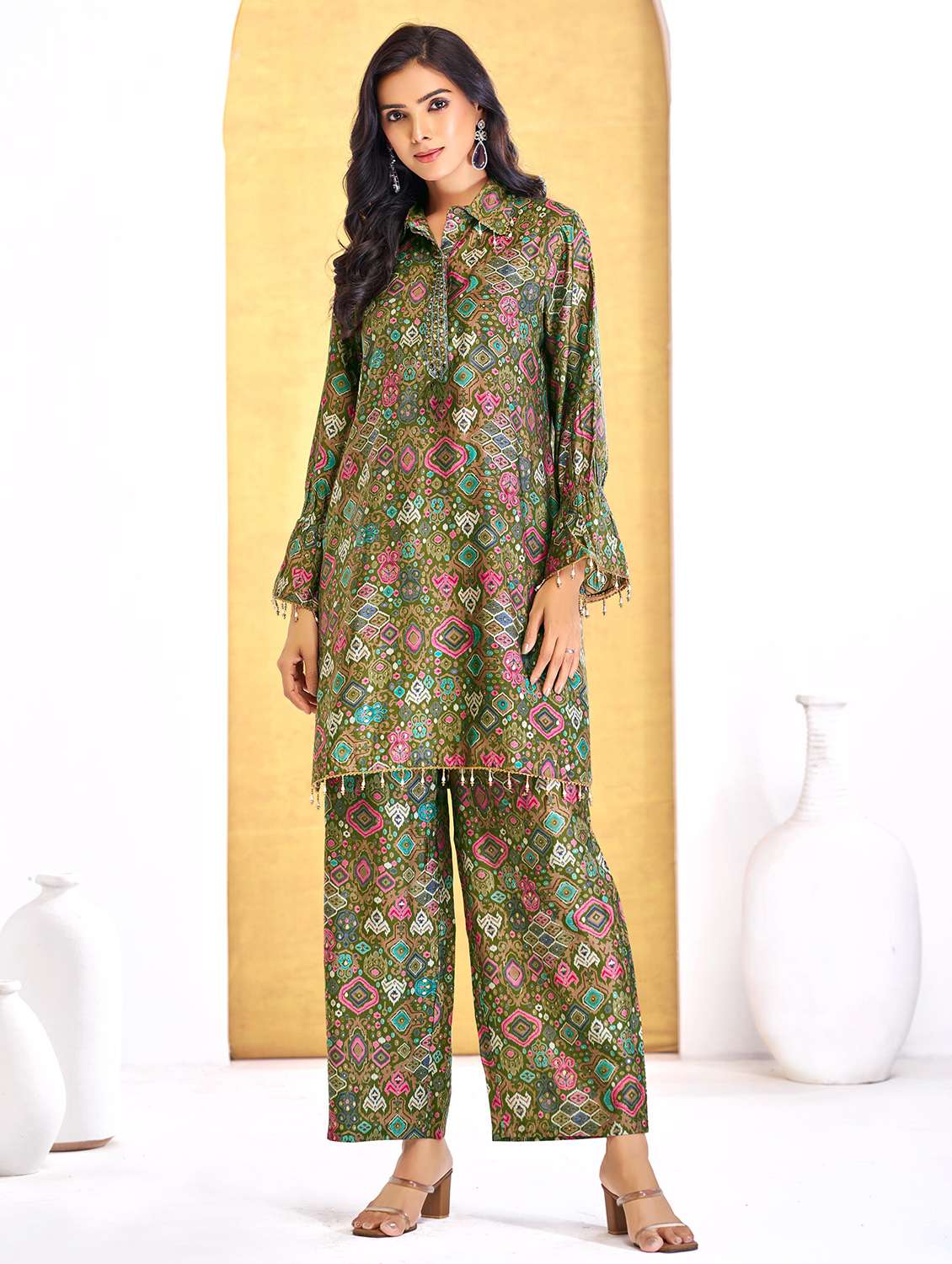 - » women printed long sleeve regular fit ethnic co-ord set
