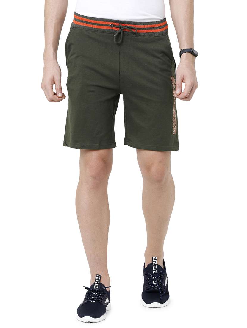 - » olive green typographic printed shorts