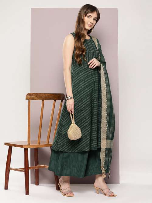 - Find gorgeous sets of ethnic wears in trending designs in bottle green colors suitable for festive wear of occasions.