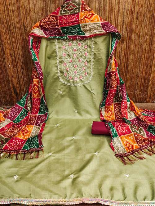 - Look ultra gorgeous in unstitched suits from Leeli Peeri Designer and grab these beautiful suits in neo mint colour.