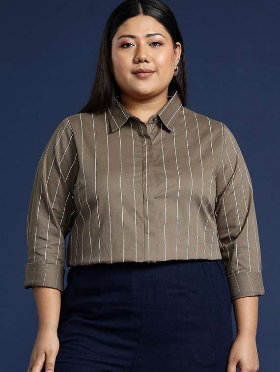 women plus size striped collared long sleeve shirt - 22038504 -  Standard Image - 0 women plus size striped collared long sleeve shirt - 22038504 -  Zoom Image - 0