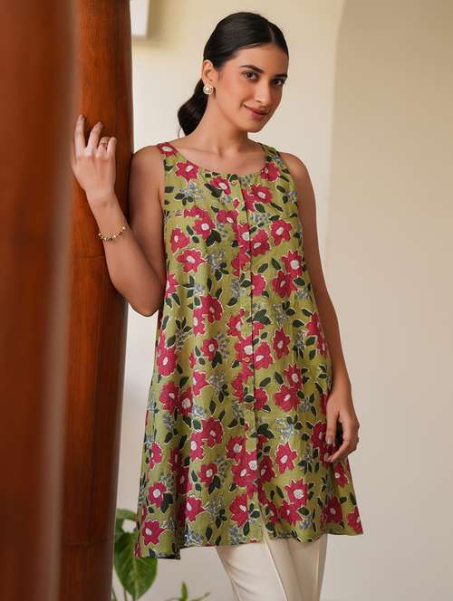 - » women olive floral printed a-line tunic