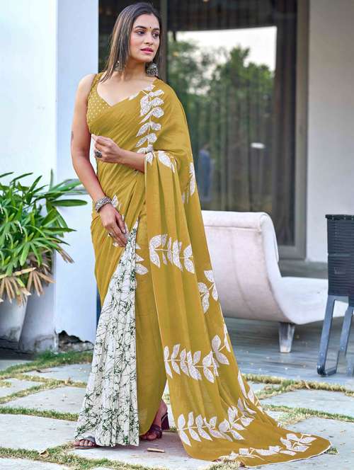 This Olive pure cotton saree is enhanced with authentic Bagru block prints, adding a sophisticated and earthy charm to your ethnic wardrobe. Made from breathable pure cotton, it offers lasting comfort and a relaxed drape. It comes paired with an unstitched matching cotton blouse piece, allowing you to customize it to suit your personal style.