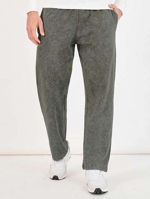 men olive relaxed fit full length track pants