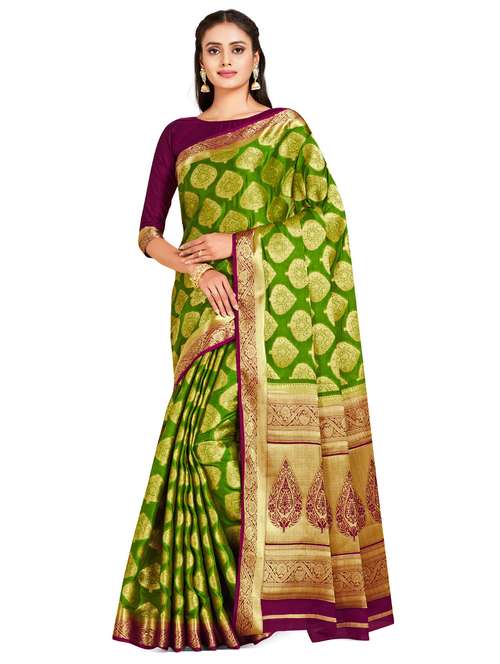 - » women's self design green colored saree with blouse