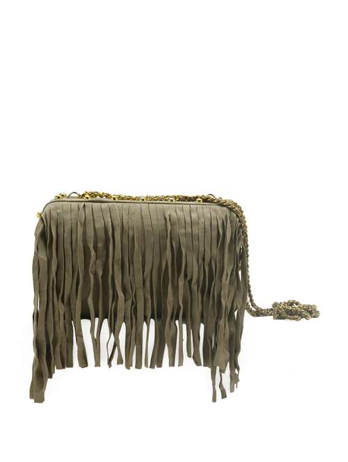 - » olive green seude fringed clutch