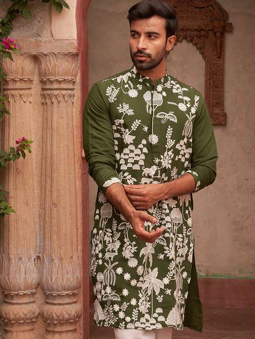 - » men olive embroidered kurta and pyjama set