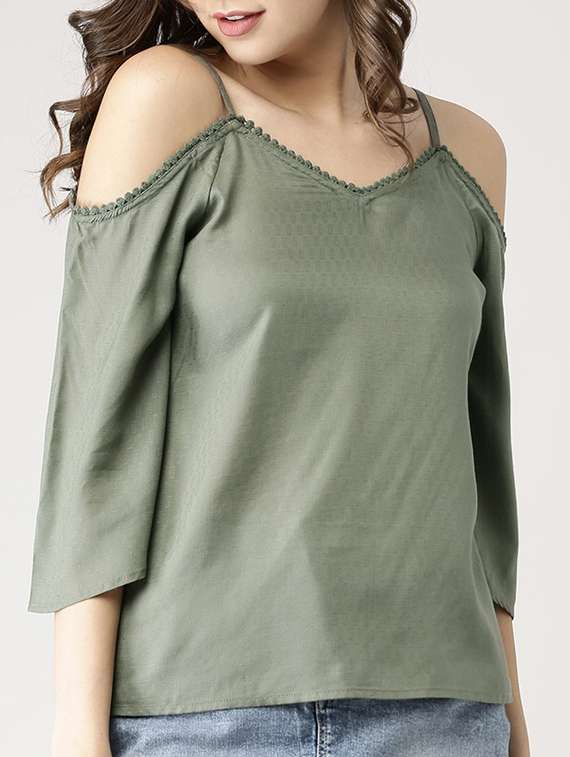 - » lace detail cold shoulder top