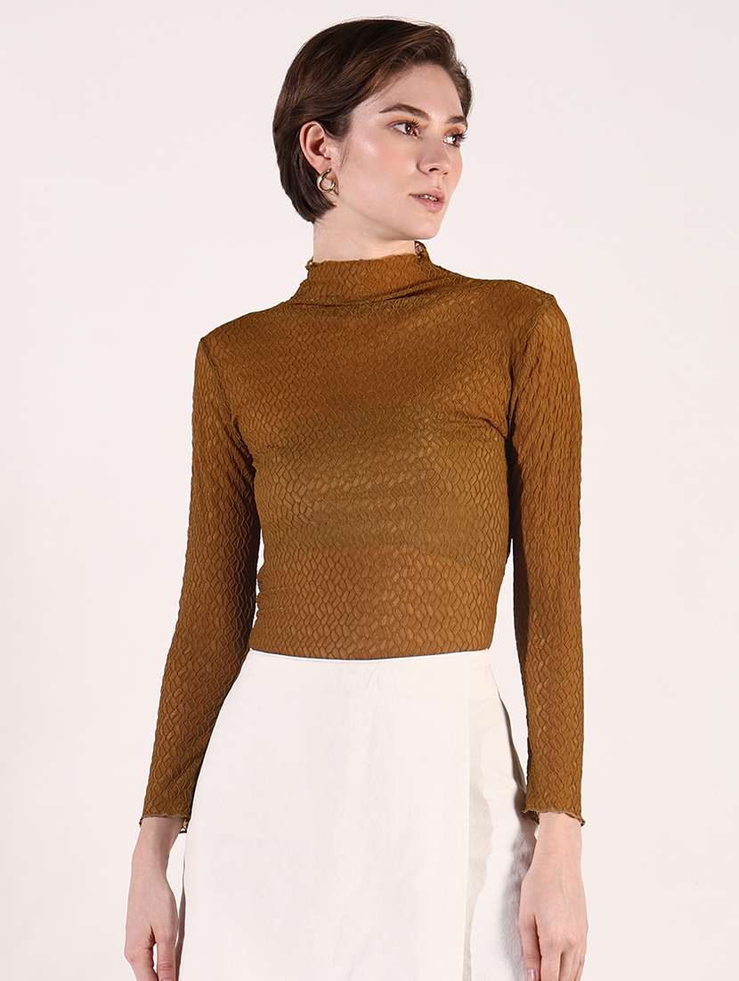 - » women solid high neck slim fit top