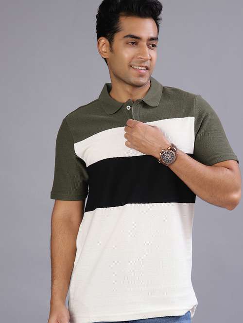- » men color blocked short sleeve regular fit polo t-shirt