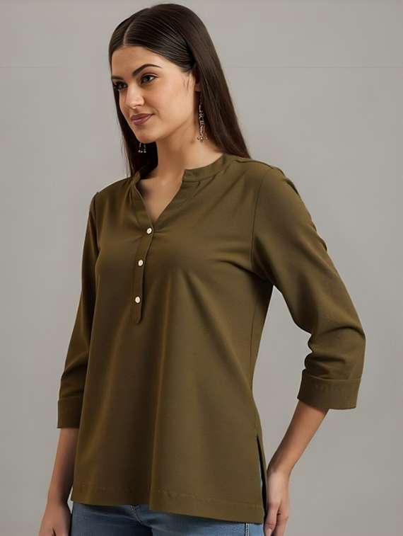 women solid three quarter sleeve tunic - 22030572 - Very Small Image - 1