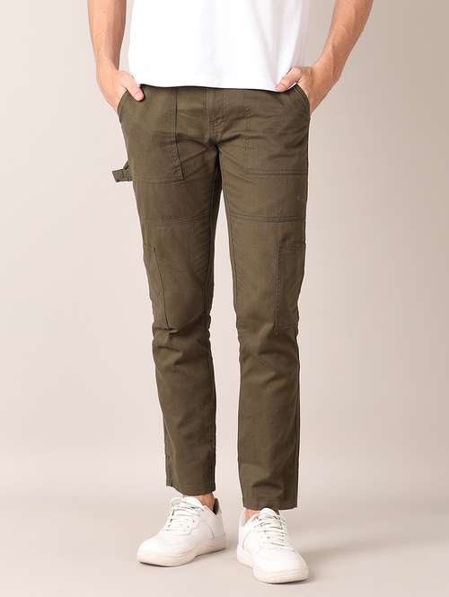 - » men olive solid mid rise cargo