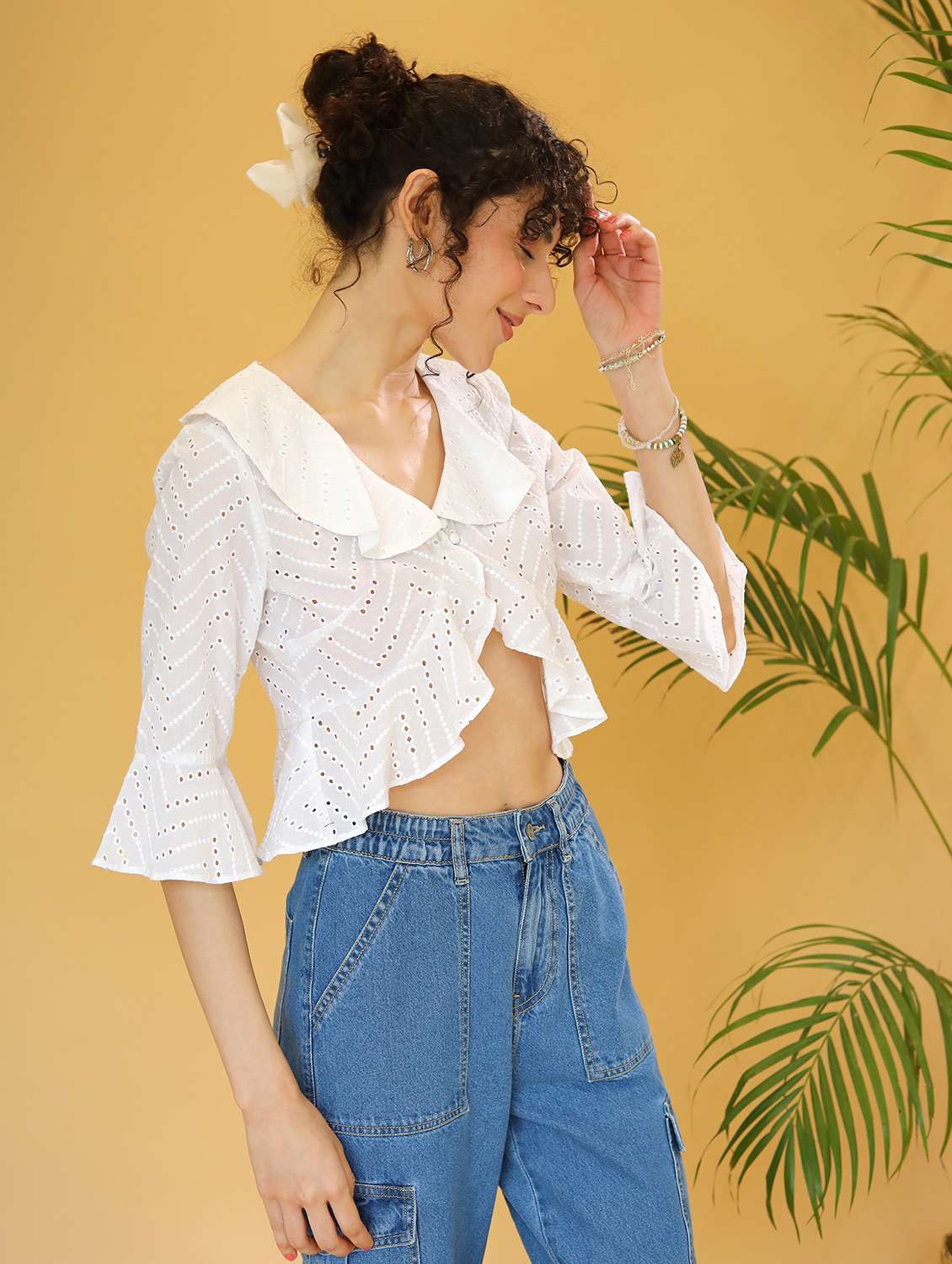women ruffled detailed schiffli high-low top - 21295243 -  Standard Image - 4 women ruffled detailed schiffli high-low top - 21295243 -  Zoom Image - 4