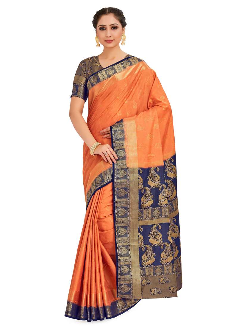 orange art silk kanjivaram saree - 18214299 - Very Small Image - 1