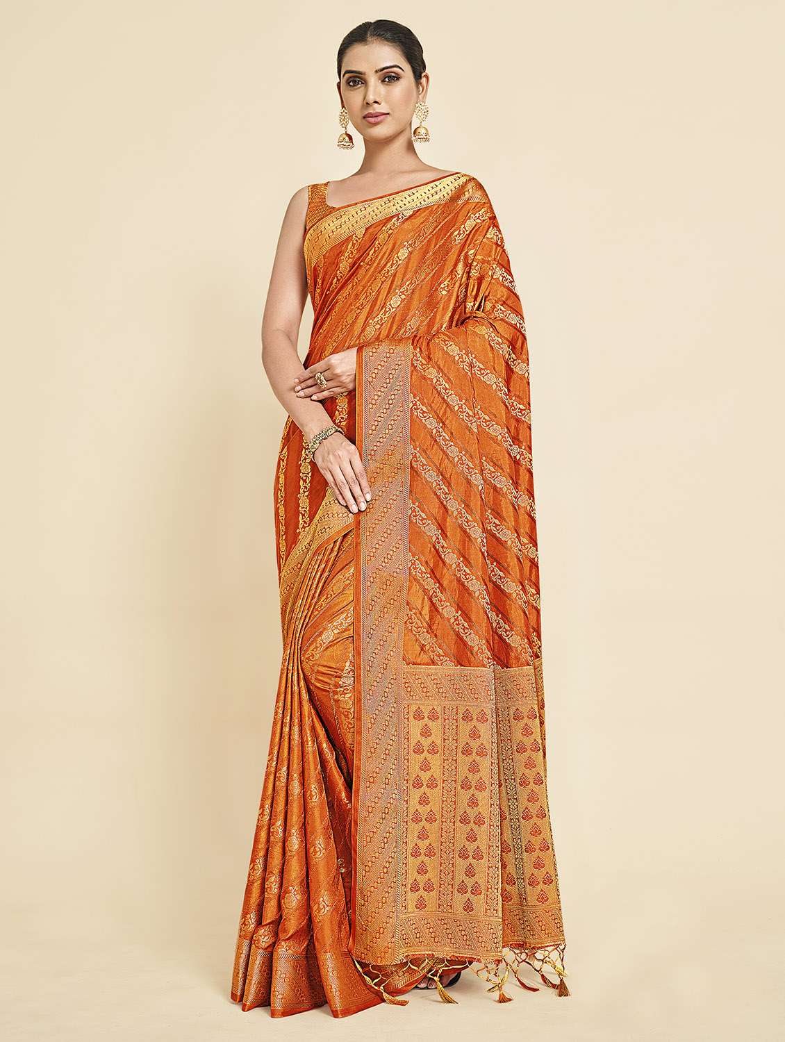 - » women's leheriya orange colored saree with blouse