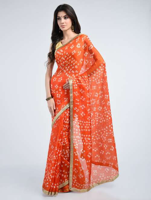 - » delicate golden lace bandhani saree with blouse