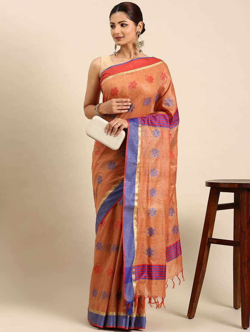 - » women's self design orange colored saree with blouse