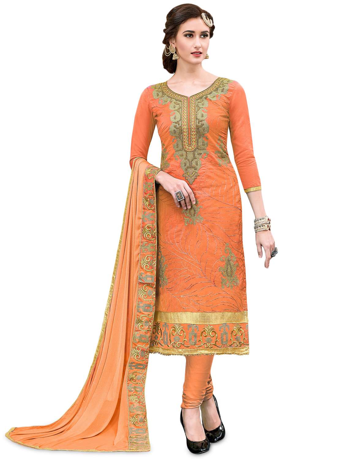 - Look ultra gorgeous in unstitched suits from Kavya and grab these beautiful suits in orange colour.