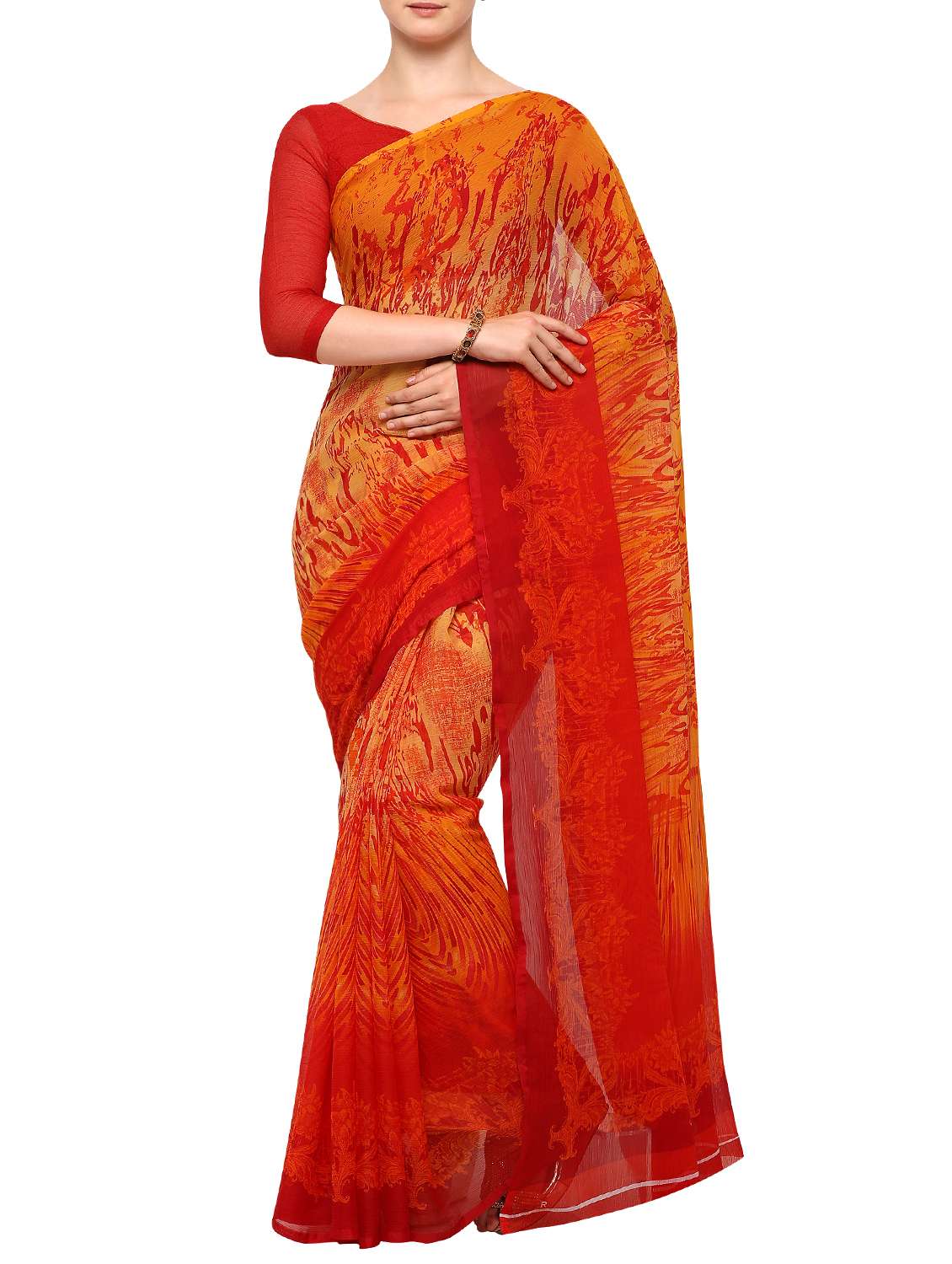 - » abstract printed orange saree