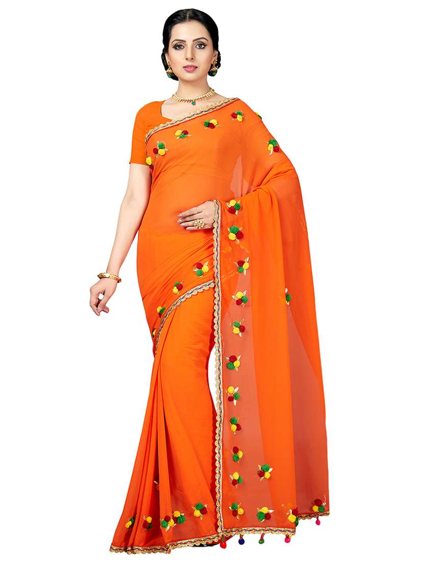 orange chiffon gota patti saree with blouse
