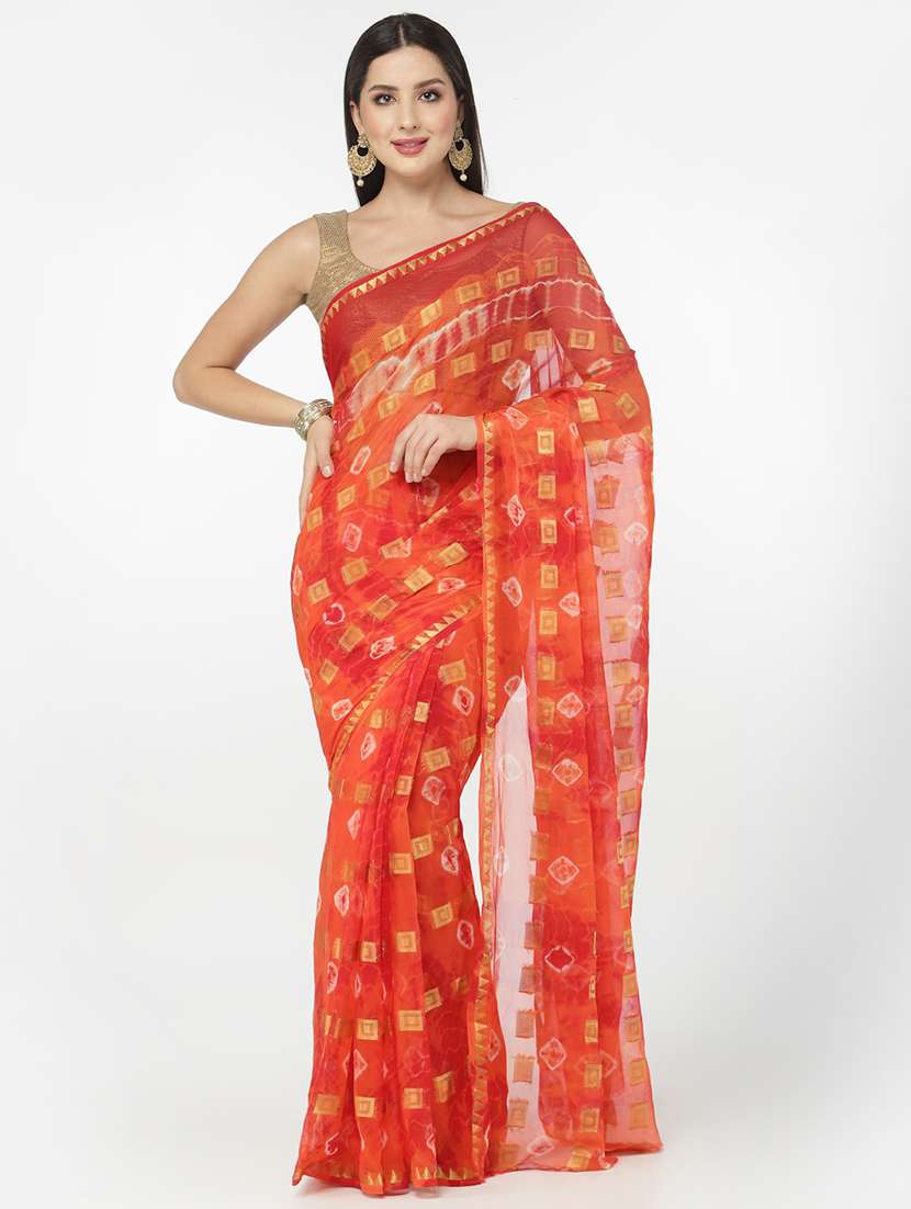 orange tie & dye saree with blouse