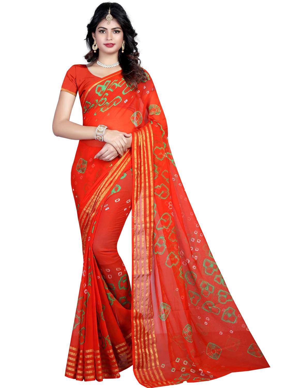 women's bandhani red colored saree with blouse