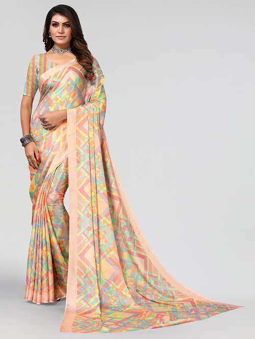 women orange geometric printed saree with blouse