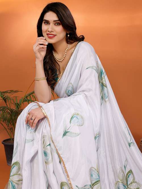 Vairagee Chinnon Chiffon Printed Saree & Banglory Blouse