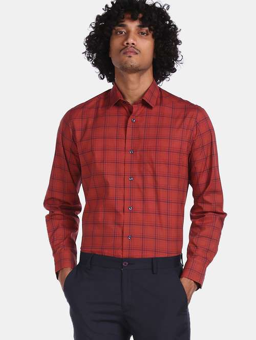 rust checkered formal shirt