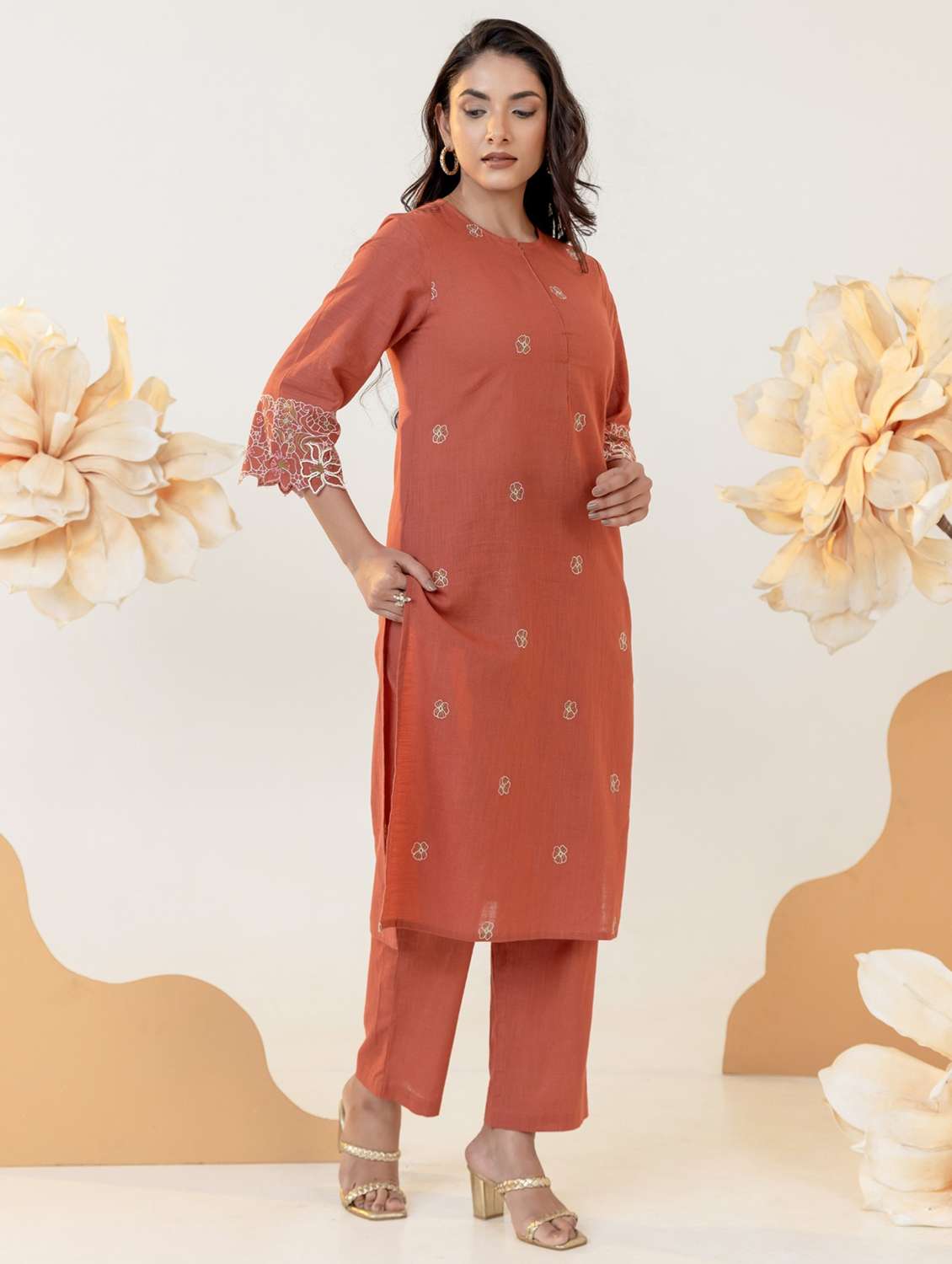 women floral three quarter sleeve kurta pant set - 22005444 - Very Small Image - 1