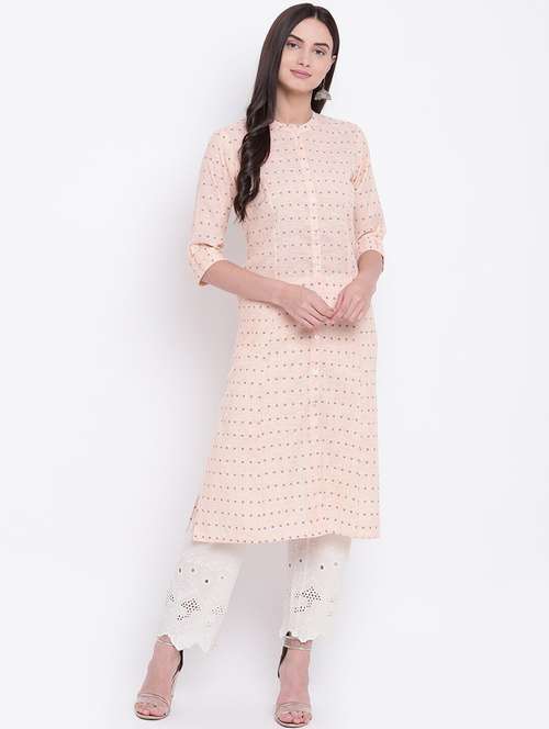 - Grab this beautiful kurta made up of cotton fabric featuring round neck designs.