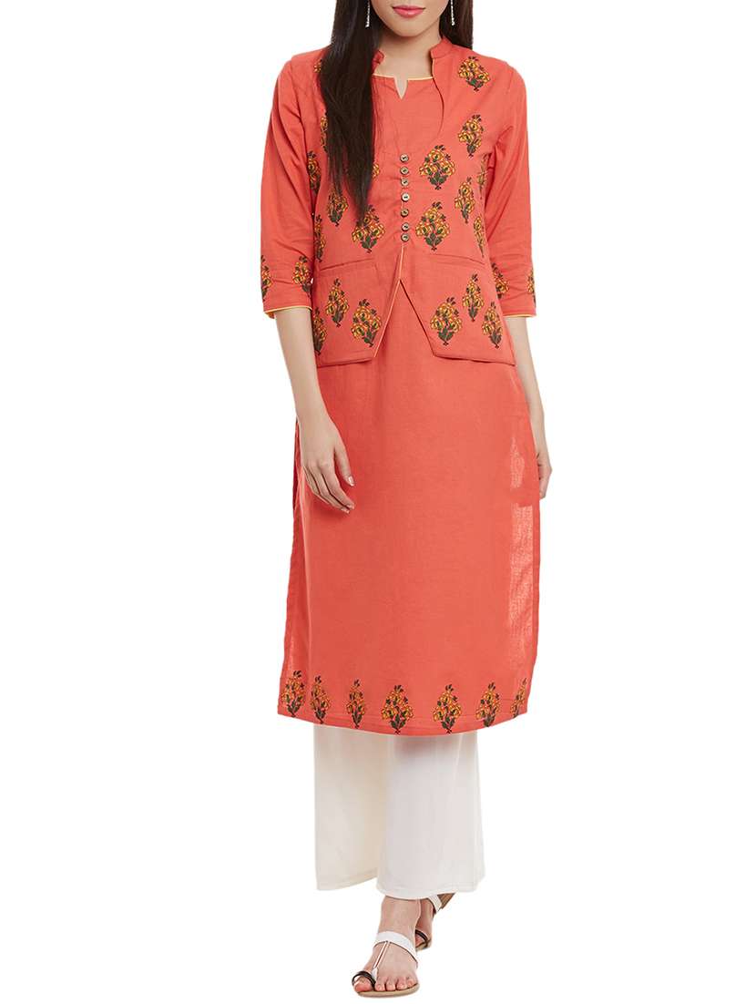 - Grab this beautiful kurta made up of cotton fabric featuring mandarin collar neck designs.