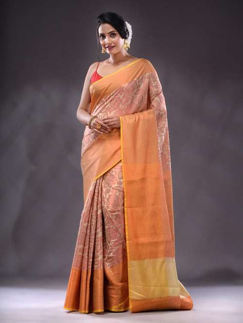 Look glamorous and alluring in this red matka silk handwoven saree. It has plain all over with zari and the borders have geometric patterns.