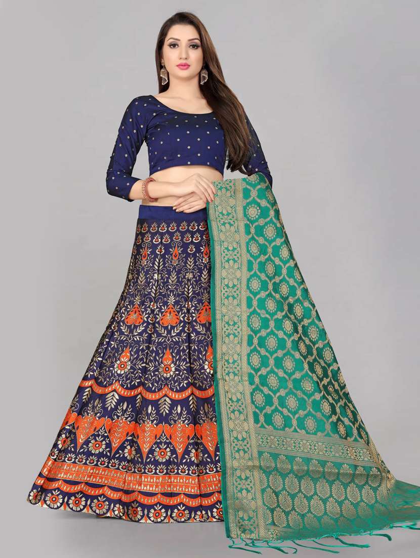 - » brocade self designed flared semi-stitched lehenga