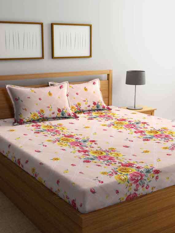 - » fabinaliv peach floral 210 tc cotton blend king size double bedsheet with 2 pillow covers