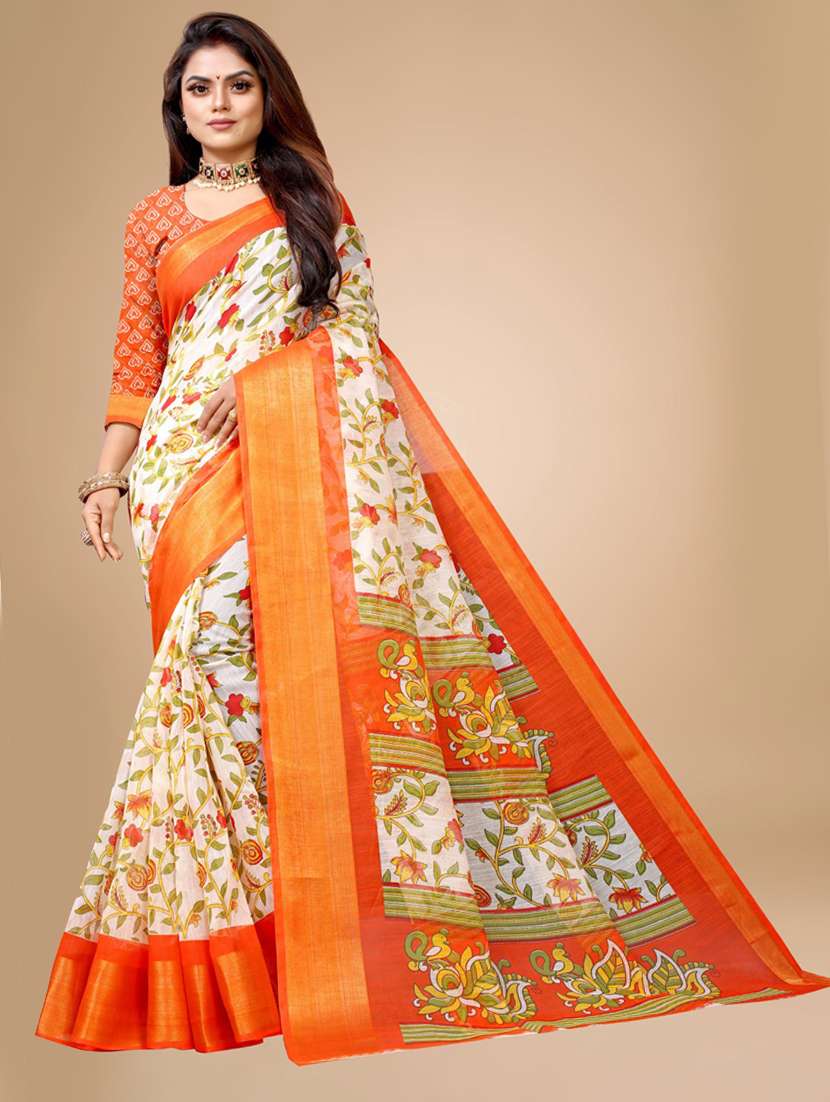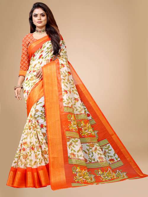 ethnic motif printed saree with blouse - 19285656 - Very Small Image - 1