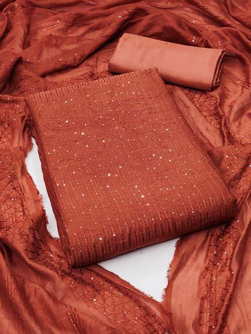 women solid with work embroidered unstitched suit set - 22016369 - Very Small Image - 1