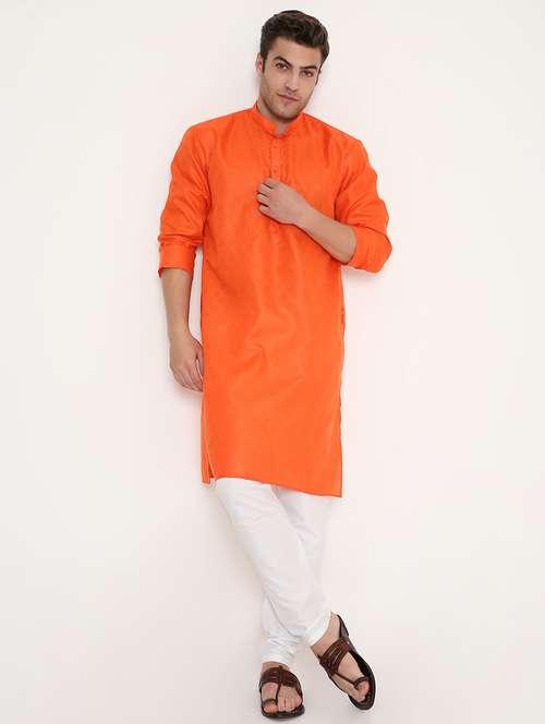 - » men self design mandarin neck long kurta